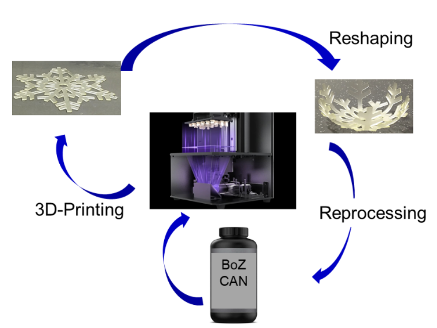 Le secteur de l’impression 3D explose, des besoins nouveaux deviennent perfectibles et concernent notamment la recherche de chimies alternatives aux acrylates et époxydes connus depuis plus de 50 ans et ne pouvant répondre à des propriétés particulières ou à des questions de reprocessabilité/recyclabilité. Le projet BoZ-CAN vise à explorer la chimie des benzoxazines en tant que nouvelle plateforme de précurseurs pour l’impression 3D. Il s’articulera autour de plusieurs WP allant de la synthèse de dérivés de benzoxazines fonctionnalisés, l’impression 3D par DLP, la polymérisation des benzoxazines par ouverture de cycle et l’introduction de liaisons dynamiques qui sous stimulus pourront permettre la réparation ou le recyclage des polymères thermodurcissables utilisés. Il s’appuie sur les compétences complémentaires de deux laboratoires partenaires, le LPIM et le LIMA.