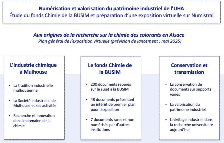 Étude du fonds ancien du LC, notamment du fonds dit de la BUSIM (Bibliothèque de l’Université et de la Société industrielle de Mulhouse) dans le domaine en particulier des sciences et techniques, numérisation de sources rares et constitution d’une exposition virtuelle à destination du public.