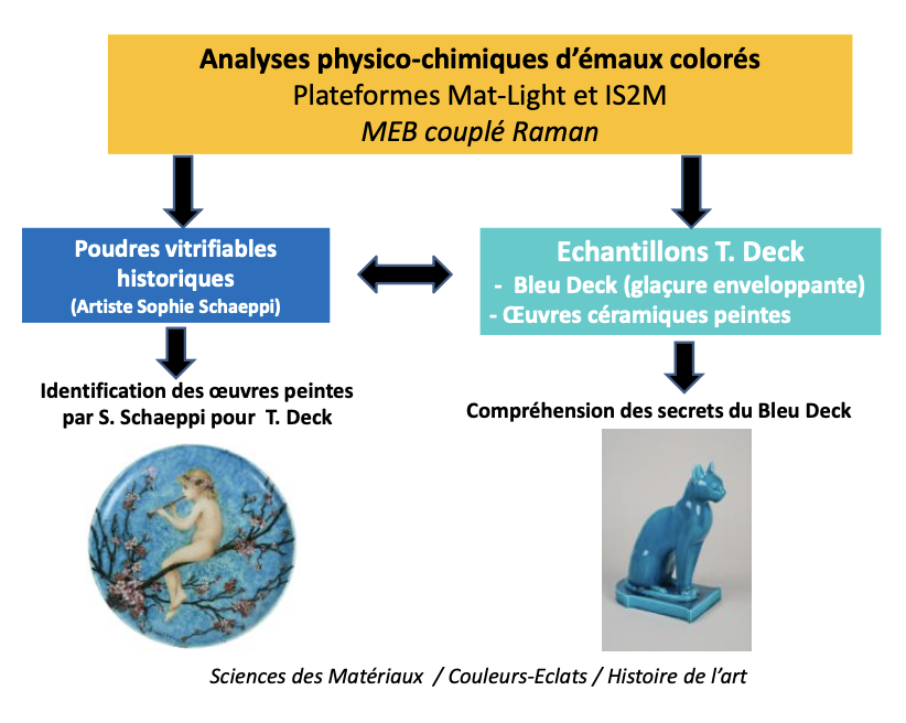 Le projet vise à élucider le secret du « bleu Deck », couleur emblématique obtenue par le céramiste guebwillerois Théodore Deck, dont l’éclat unique n’a jamais été reproduit. Par une approche d’« analyses des matériaux », mobilisant les techniques avancées des plateformes IS2M et Mat-Light 4.0 (MEB couplé Raman), il s’agira d’examiner en profondeur la composition et la structuration des émaux de Deck et de comparer ces résultats aux poudres vitrifiables historiques récemment retrouvées. Le CRESAT exploitera ces données pour replacer cette couleur et ce procédé dans leur contexte technique et historique. Le projet renforcera l’interdisciplinarité et contribuera à la valorisation du patrimoine local et national.